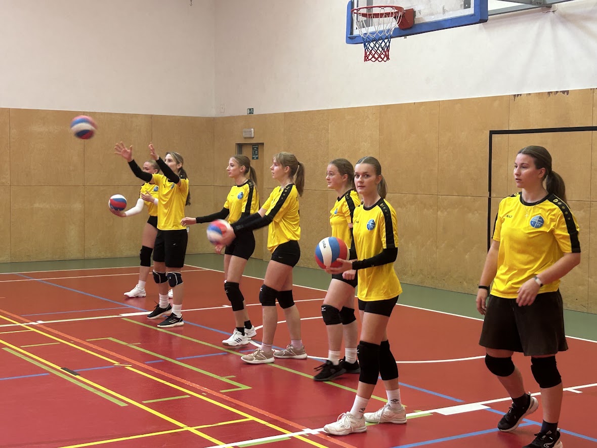 Studentky naší školy: Naty Tománková, Míša Vrbová, Mája Stixová, Ellen Brudíková, Zuzka Slámová (všechny z PMP2), Anička Hynštová (G6), Niky Peclová (G7), Anička Pospíšilová (PL2) a Barča Slaná (PL1) se dne 14.10.2025 zúčastnily středoškolského volejbalového turnaje dívek na Jarošce. Nastoupily proti týmům ze SZŠ Jaselská, GyBy a Gymnázia třídy Kapitána Jaroše.