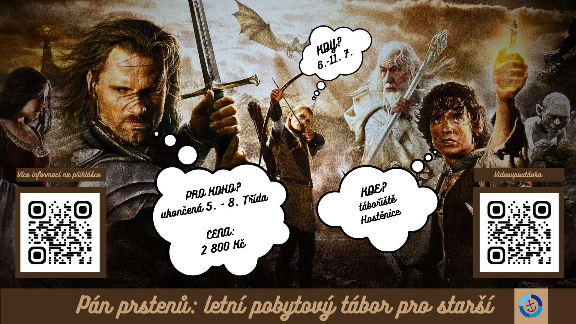 6. až 11. července se vydáme pomoct Frodovi zničit Prsten moci a zachránit Středozem. Prožijeme spolu spoustu her v přírodě a možná se i něčemu přiučíme. Středozem na Vás čeká!